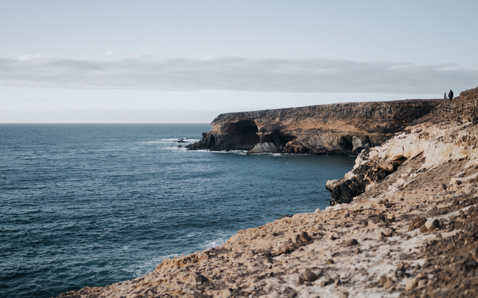 Mit der Treppe kommst du erst in die eine Höhle und die andere ist nur mit klettern, durch ein Loch zu erreichen. Kannst du dir vorstellen, dass Piraten hier mal ihre Beute versteckt haben? Erst haben sie die Menschen auf Fuerteventura beraubt. Das Diebesgut dann hier gebunkert.